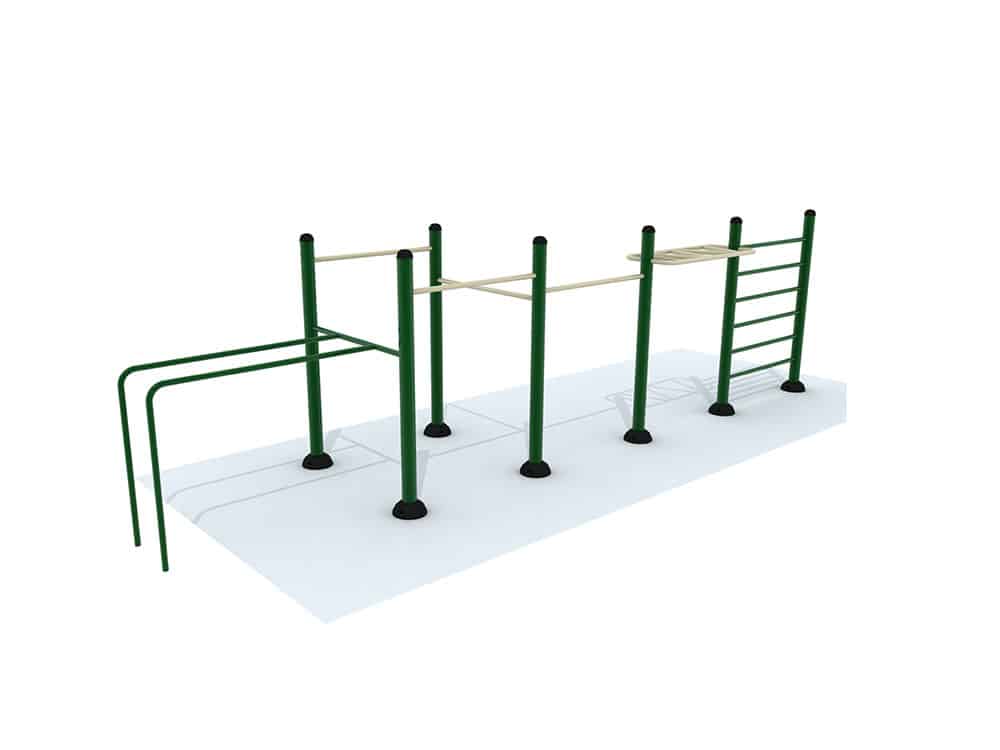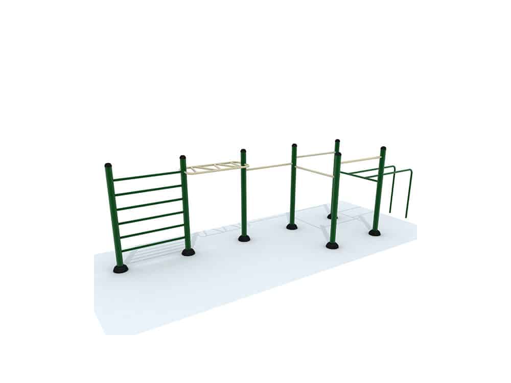 Our Calisthenics park and street workout equipment is the ultimate all-in-one solution for outdoor fitness, perfect for parks, gyms, and community spaces. First, we design this multi-station system to support a full range of bodyweight exercises, including pull-ups, dips, push-ups, and climbing, so users of all fitness levels can train effectively. Next, we build every piece from heavy-duty, rust-resistant steel with a weatherproof coating, so it stands up to years of sun, rain, and intense daily use. Additionally, we add smooth, non-slip bars and reinforced joints to ensure maximum safety during every workout. At the same time, the modular layout lets you customize the setup to fit any outdoor space, from small neighborhood parks to large fitness zones. Finally, the durable green finish stays vibrant for years, making it a standout addition to any outdoor area.