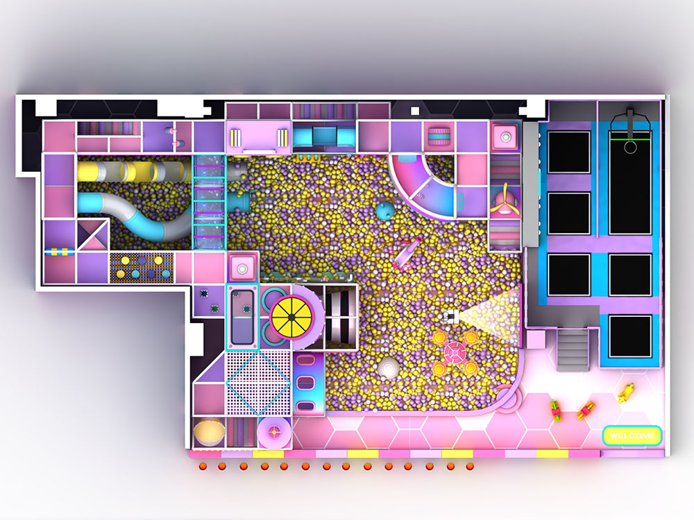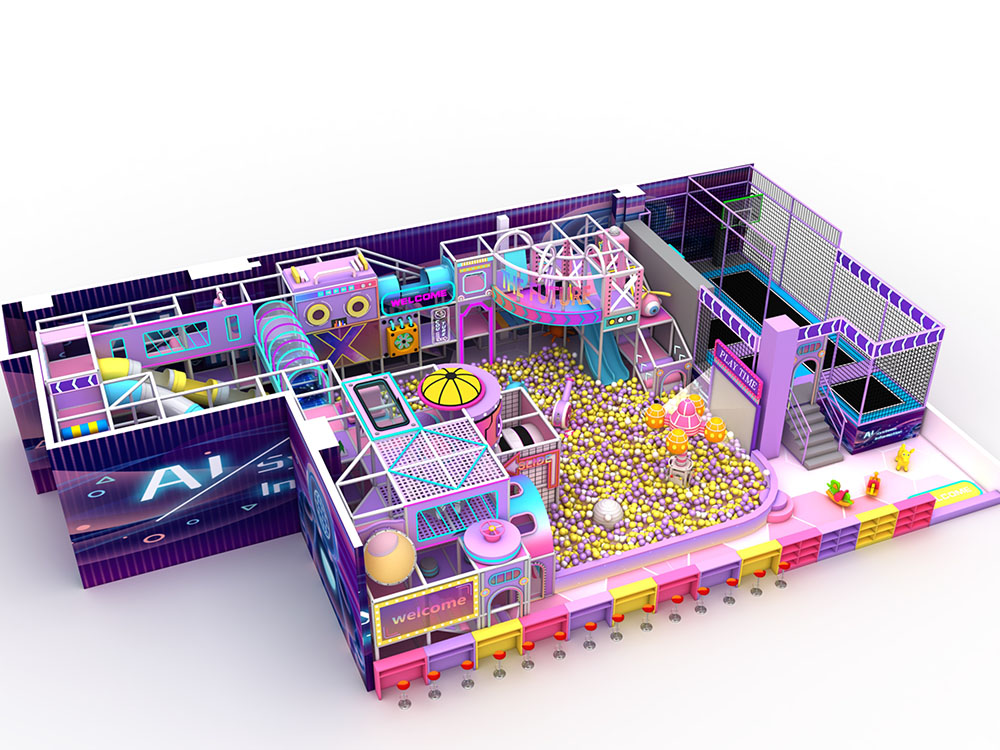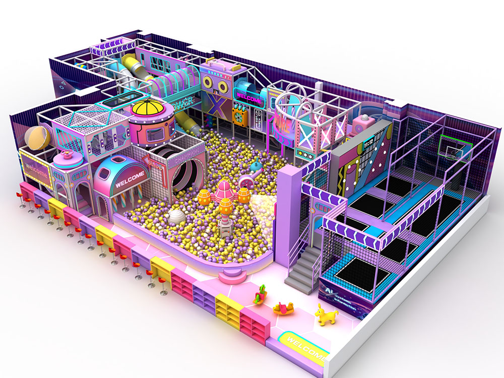 This type of childrens indoor playground combines various entertainment elements, aiming to provide a safe and fun environment for children. The trampoline area is especially perfect for kids to burn off energy, while the interactive equipment helps them develop physical coordination and motor skills.