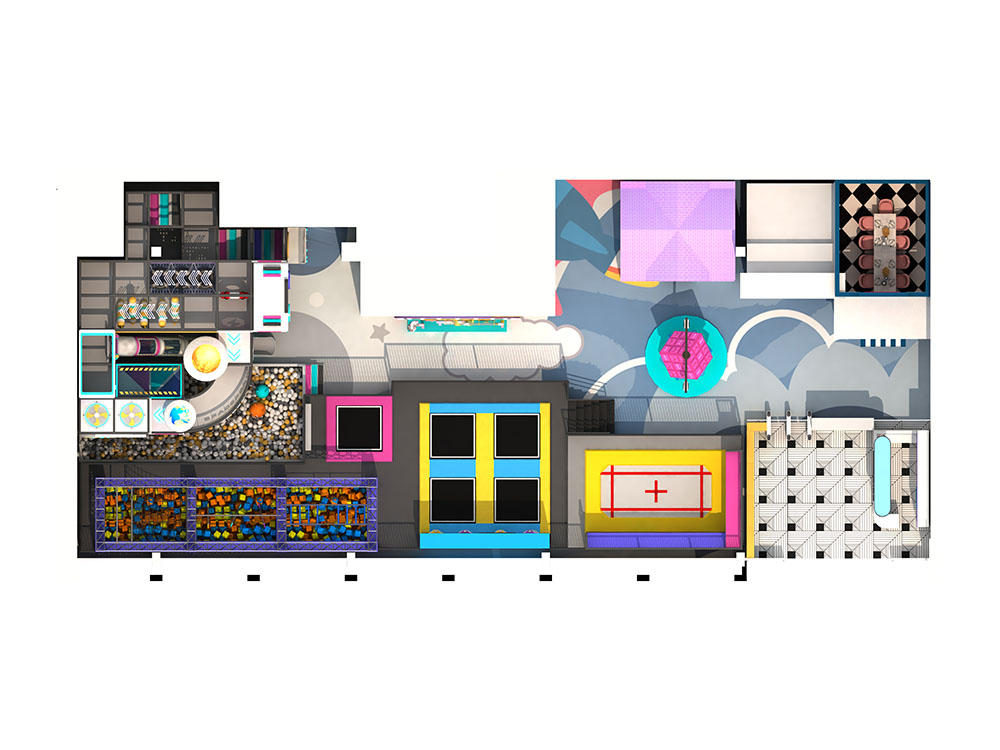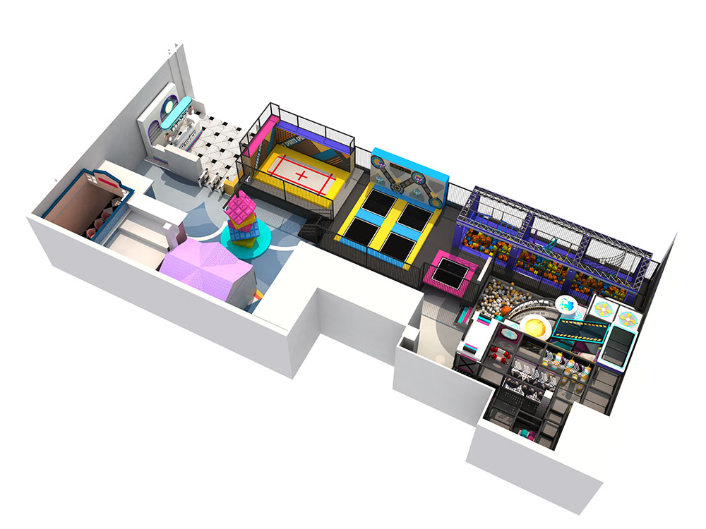 This city indoor playground offers an exciting blend of fun and adventure, featuring a variety of trampoline zones, giant slides, ball pits, and obstacle courses. The layout is designed to engage kids with trampoline dodgeball, mini climbing walls, and interactive play areas, all promoting physical fitness while ensuring safety.