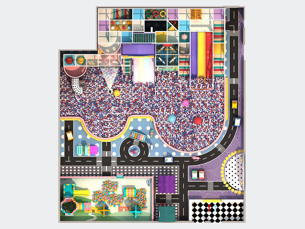 This city indoor playground offers an expansive layout filled with interactive play areas and exciting activities. It features slides, party room, and a large ball pit, creating a fun, dynamic environment for children of all ages. The playground also has a racing track for toy cars, a merry-go-round, and various obstacle courses, making it an exciting destination for both adventurous play and socializing.