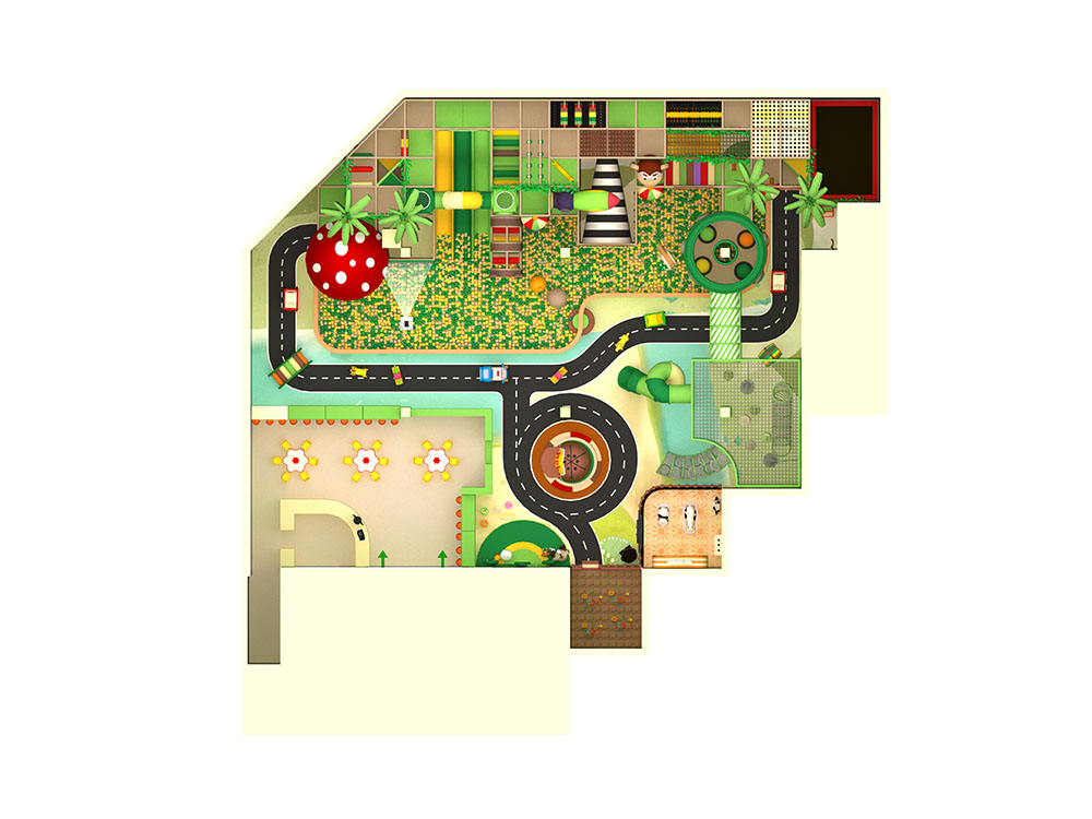 In the forest playroom, children can enjoy imaginative play as they drive toy cars along the winding roads, climb through the green maze, or enjoy a fun carousel ride. With its vibrant forest atmosphere and engaging play zones, this space offers a safe and exciting environment for children to explore and socialize.