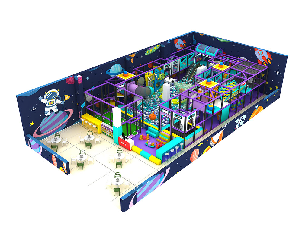 Perfect for shopping malls and family centers, these good indoor play areas combine bright colors, durable materials, and interactive play structures to create a visually striking and enjoyable environment. The space-themed decorations and thoughtful layout make it an ideal destination for children to explore, learn, and have endless fun.