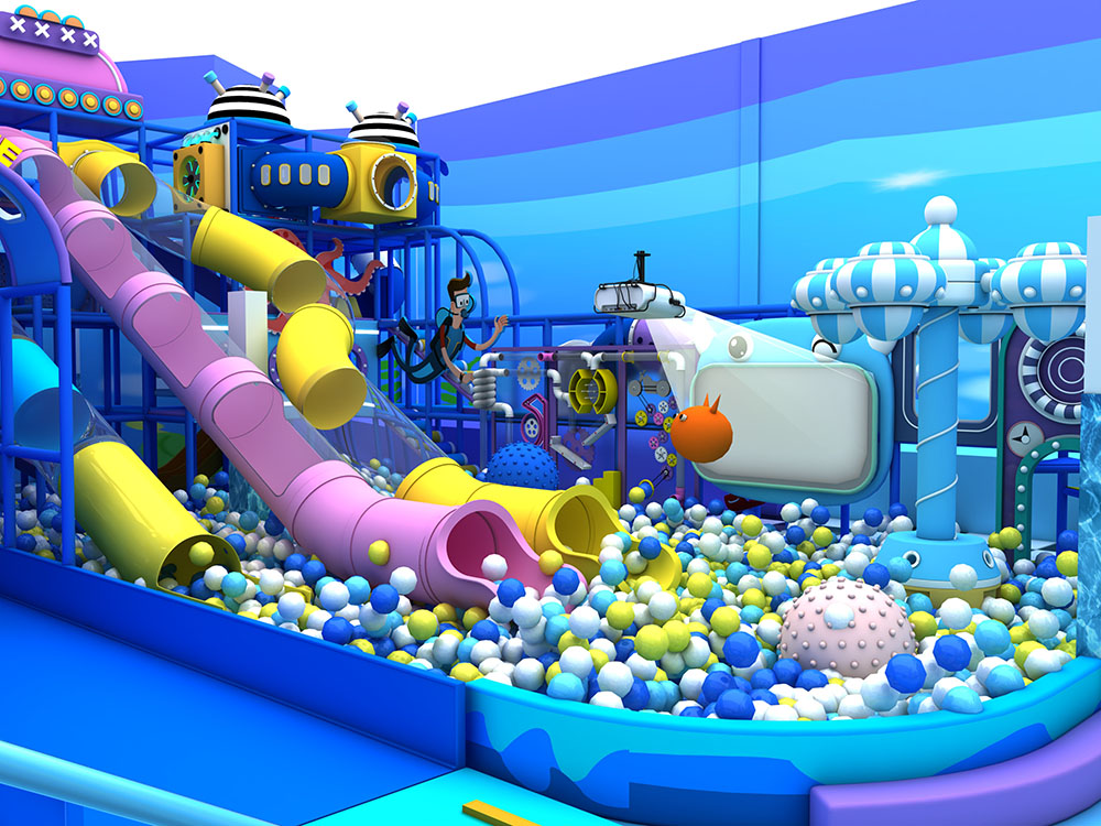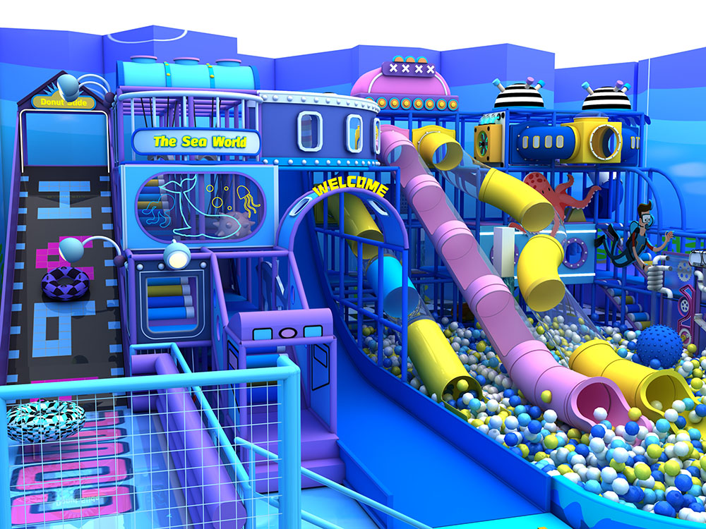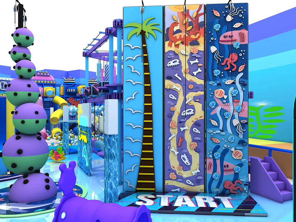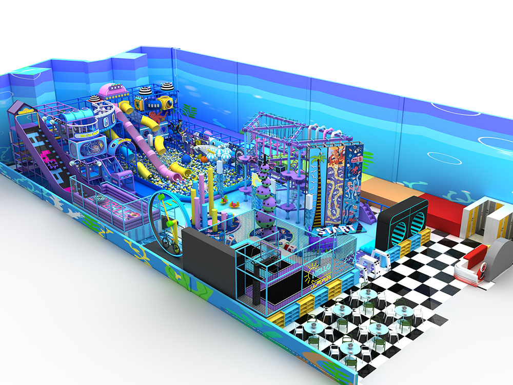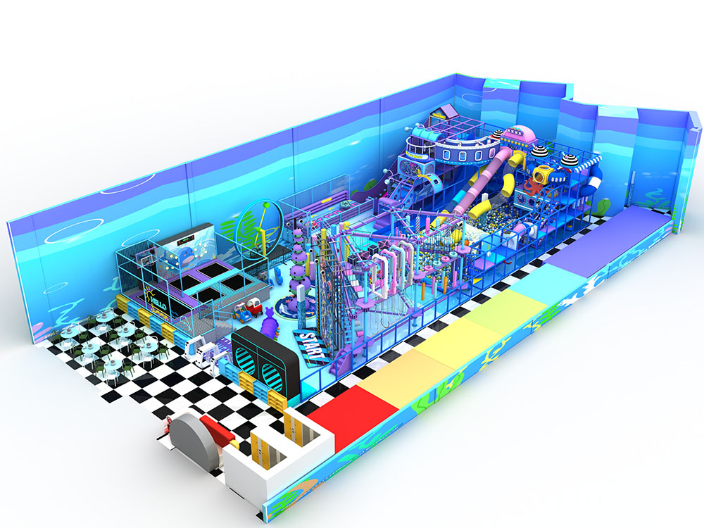 This ocean-themed indoor playground trampoline combines trampolines, slides, climbing frames, obstacle zones, and soft play into one immersive adventure space. Children can bounce, crawl, and explore through colorful tunnels, ball pits, and multi-level structures, enjoying a safe and energetic play experience. Ideal for malls and family centers, this indoor playground trampoline uses durable materials and vibrant designs to create a fun, all-in-one attraction for kids of all ages.