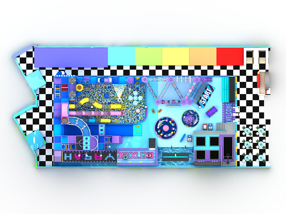 Perfect for malls, family centers, and kids cafe, this indoor playground trampoline layout offers a well-planned mix of active play and toddler-friendly zones. With durable materials, engaging themes, and diverse attractions, it provides an exciting, all-in-one play experience that keeps children entertained for hours.