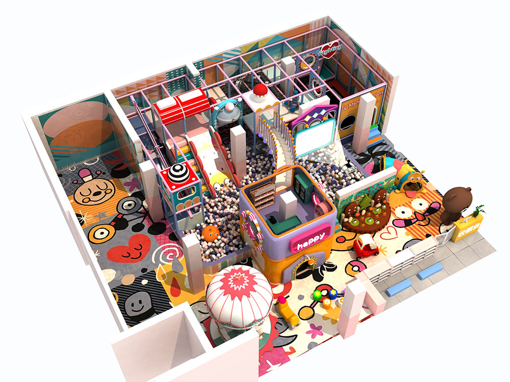 Blending energetic tones and dynamic layouts, this one-level custom indoor soft play area is designed in a cute and fun theme to inspire active play, teamwork, and exploration. Its thoughtful design maximizes space, offering exciting challenges and fun activities for both toddlers and older kids to develop strength, confidence, and creativity through play.