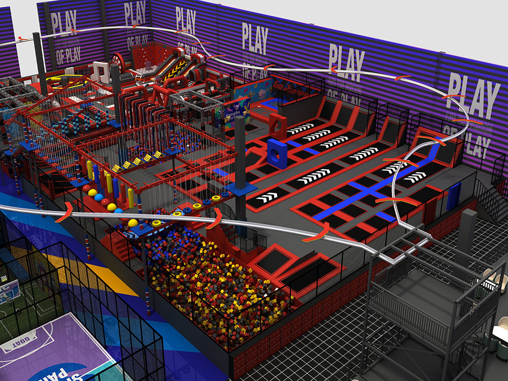 This black and purple themed market mall playground blends trampolines with multi-level soft play, foam pits, climbing features, and interactive elements to create an eye-catching attraction for shopping centers. Designed to boost energy and engagement, this market mall playground offers safe zoning, enclosed structures, and bold visuals, making it ideal for malls that want to combine trampoline fun with soft play adventure to increase family visits and longer stay time.