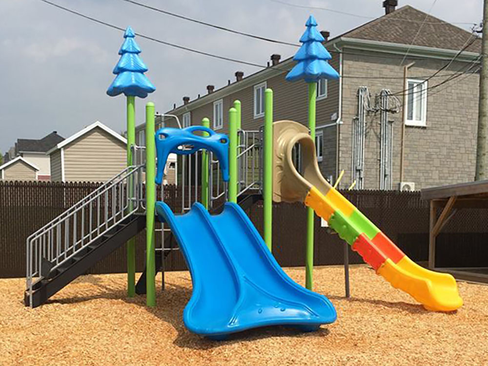 The Small Backyard Playground consist of three major games: double staright slide, disc climber and curved open slide.