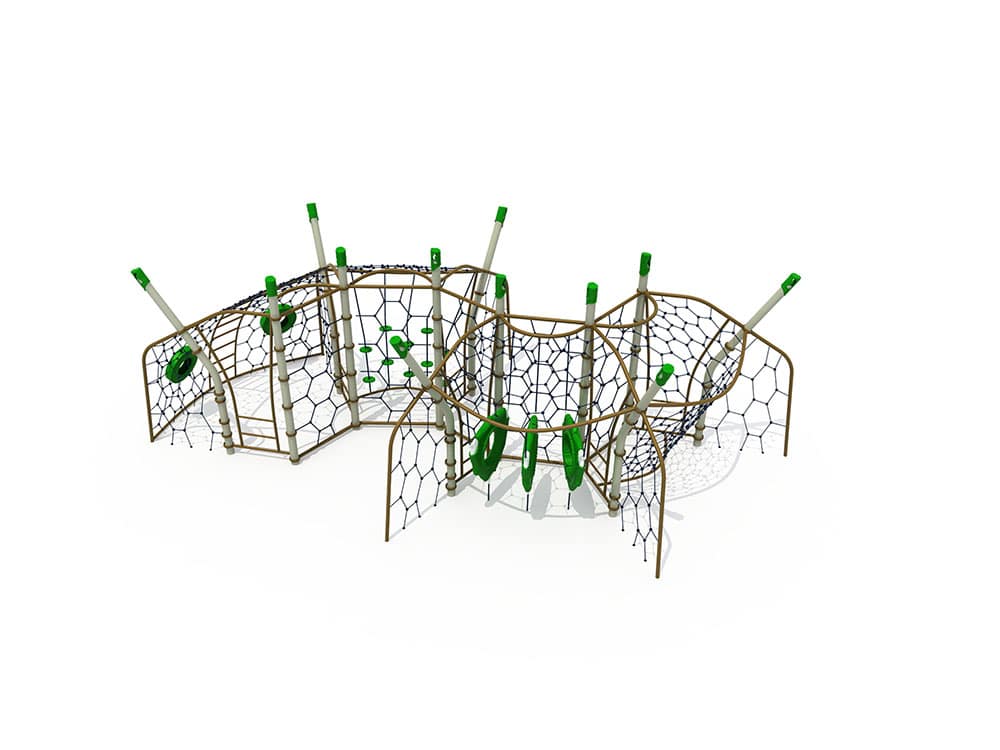 Our Modular climbing frames brings endless active fun to parks, schools, and community spaces. First, this large, flexible structure features a range of exciting rope net challenges, curved climbers, and easy-grip holds, to keep kids engaged for hours. Next, we build every unit from tough, rust-proof steel and strong, weather-resistant rope, so it stands up to years of sun, rain, and daily use. Additionally, we make all knots tight and all edges smooth to keep kids safe while they climb, balance, and build strength. At the same time, the open, modular layout lets multiple kids play together, helping them learn to work with others and use their imagination. Finally, the bright, color-fast design looks great for years, making it a perfect addition to any play area.