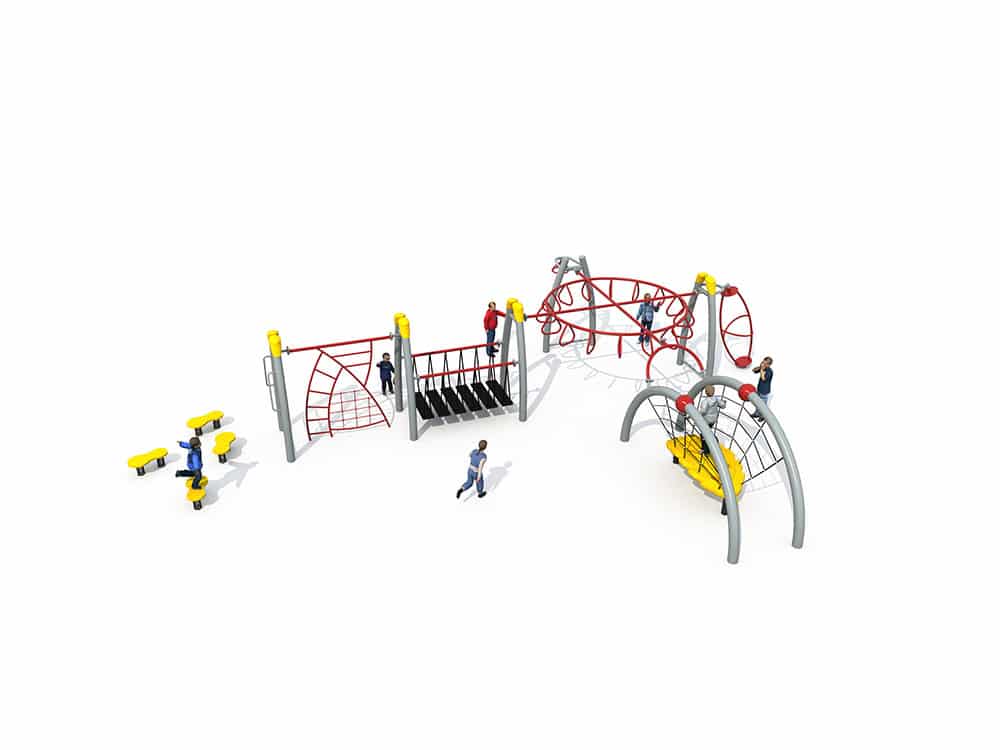 Our Childrens outdoor climbing equipment is the ultimate active play solution for parks, schools, and community spaces. First, this multi-station system features a range of exciting challenges, including rope net climbers, balance bridges, and curved climbing frames, to keep kids engaged for hours. Next, we build every piece from heavy-duty, rust-resistant steel and UV-stabilized rope, so it meets strict global safety standards. This ensures it stands up to years of sun, rain, and daily use. Additionally, all components have smooth edges and secure connections to keep kids safe while they climb, balance, and build strength. Furthermore, the open, modular design lets multiple children play together, encouraging social interaction and teamwork.