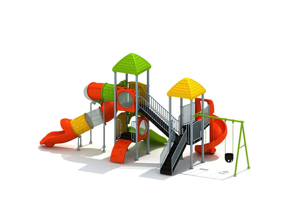 Our Outdoor playset with tube slide is a premium all-in-one playground equipment designed for active, fun outdoor play. This durable multi-play structure features a thrilling enclosed tube slide, open slides, swings, climbing stairs, and elevated play towers, supporting group play for children of all ages. Built from heavy-duty, rust-resistant steel and weatherproof HDPE plastic, it withstands years of intense outdoor use in backyards, parks, and preschools. Reinforced safety rails, smooth rounded edges, and non-slip surfaces ensure maximum safety during play, while the bright, fade-resistant color scheme stays vibrant for years. Ideal for fostering social skills, balance, and gross motor development, it’s the perfect addition to any outdoor play area.