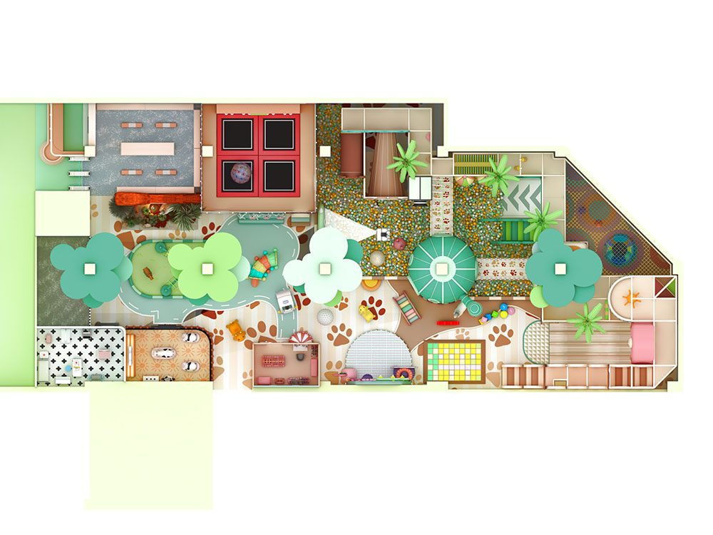 Main Play Structure, Ball Pit, Slides, Inflatable Toys, Carousel, Traffic Town, Playground Stage, Handicarft Place, Sandpit, Reception