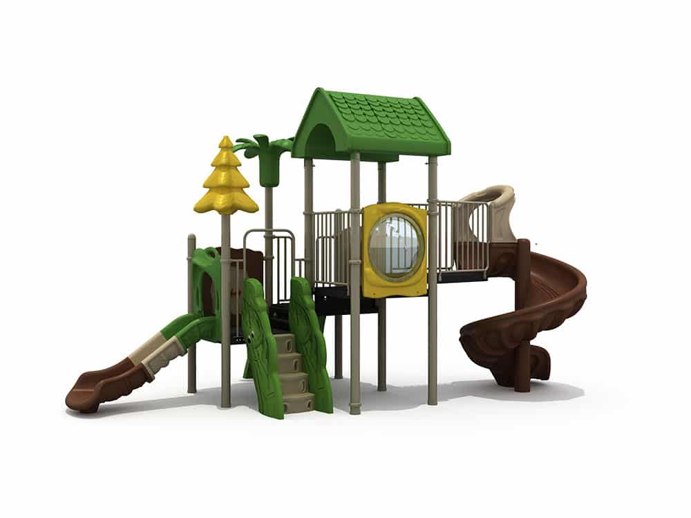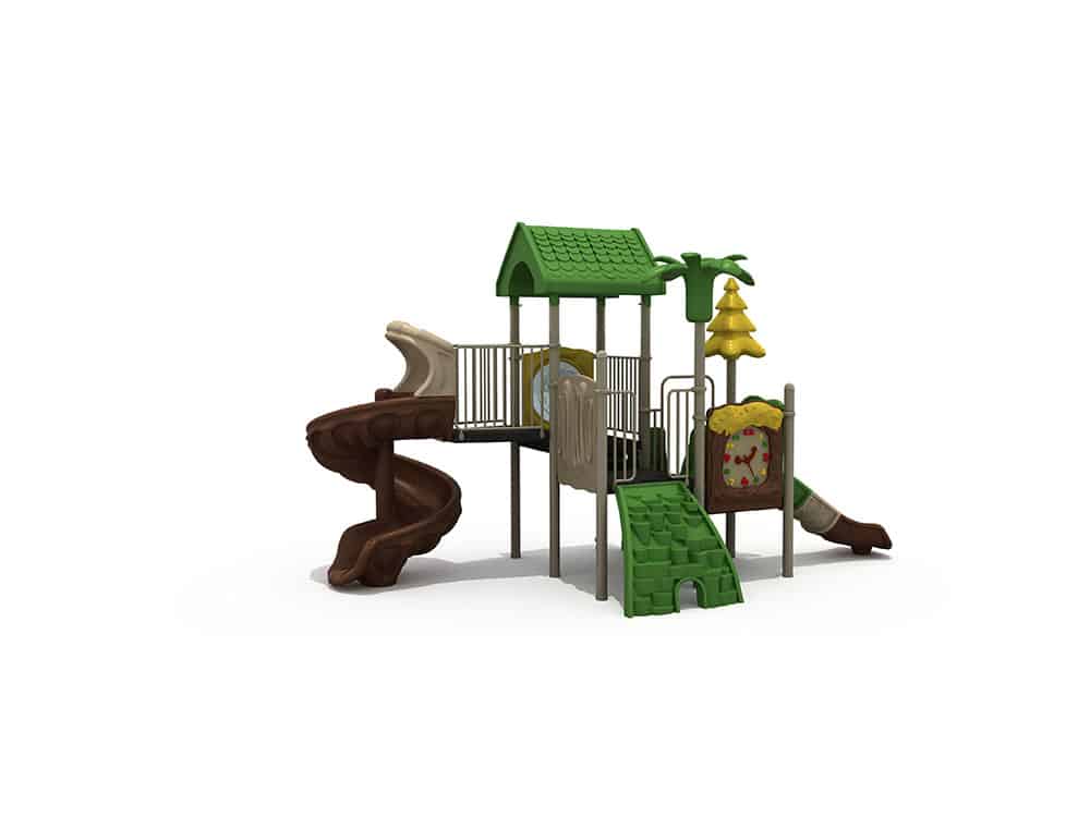 Our Treehouse outdoor play equipment brings whimsical, nature-inspired fun to compact outdoor spaces for kids aged 3–12. We build it from weather-resistant, non-toxic materials and certify it to EN1176 and IPEMA standards. It combines a curved spiral slide, a straight open slide, tree-themed climbing steps, and interactive play panels into one cohesive structure, with anti-slip surfaces and smooth edges to prioritize safety. You can customize colors to fit your backyard, and assemble it easily with clear guides or professional installation. The durable build resists rust, fading, and harsh weather, ensuring years of reliable play while supporting children’s physical and social development. We back every set with reliable after-sales support, making it a smart, long-lasting investment for families and small play spaces alike.