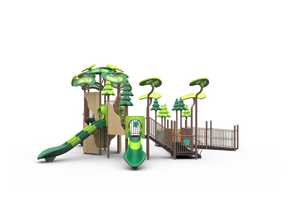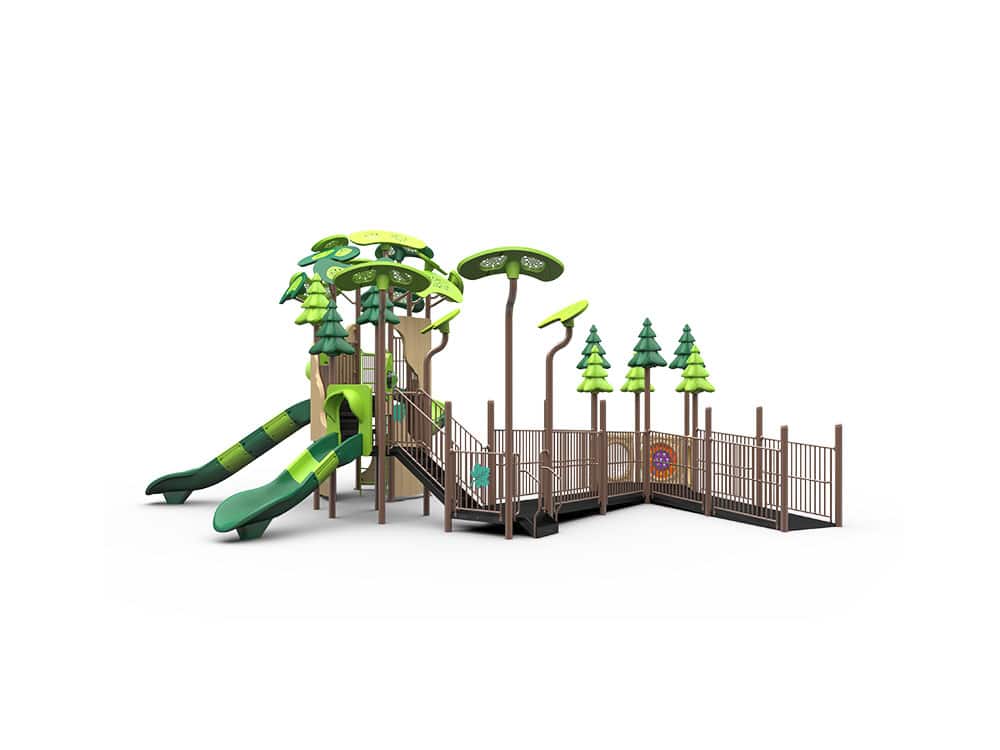 Our Wheelchair accessible playground brings inclusive, joyful outdoor play to kids of all abilities, perfect for parks, schools, and community centers. First, we design this nature-themed play system with wide, smooth ramps and gentle access to all play areas, so children in wheelchairs can join the fun easily. Next, we build every part from tough, rust-proof steel and durable, weather-resistant plastic, making sure it lasts for years under sun, rain, and daily use. Additionally, we add secure handrails and non-slip surfaces to keep all kids safe during play. Finally, the bright, tree-inspired design looks great for years, making it a perfect fit for any outdoor space.