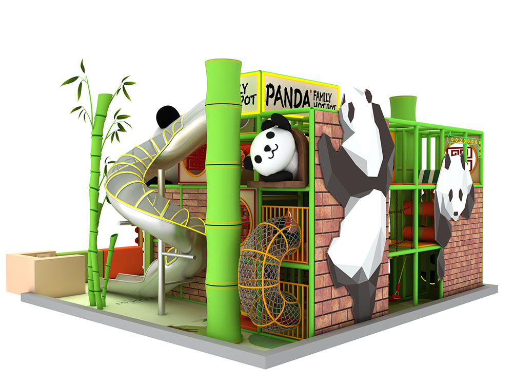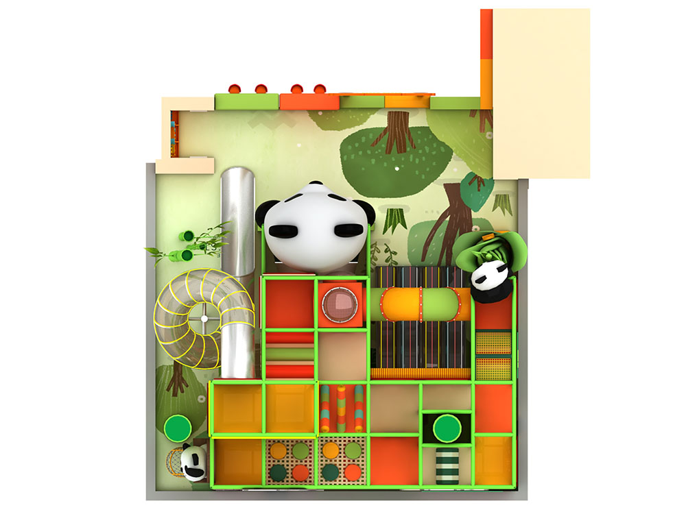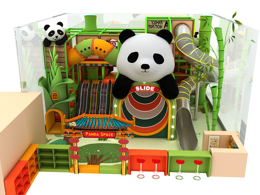 The Woodland Themed Playroom brings nature indoors with its adorable panda design, bamboo decorations, and soft green tones. It features exciting slides, tunnels, and climbing structures that let kids explore and play safely in a forest-like environment.